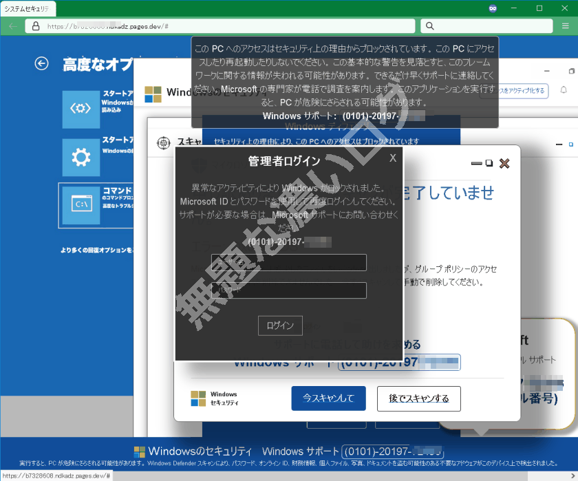 そして、その偽警告画面の目的である 電話サポート詐欺 の脅威を見てみましょう。