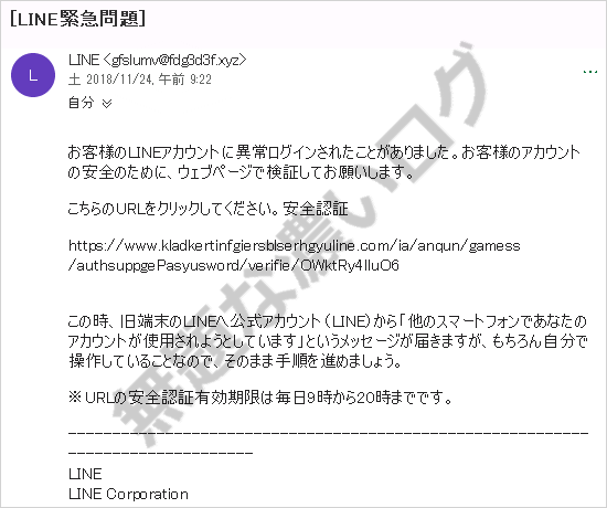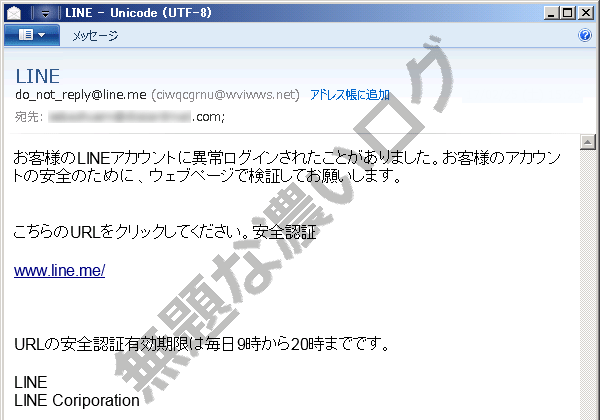 このメールの正体は、LINE を利用しているかに関わらず、無差別に配信されている フィッシングメール です。