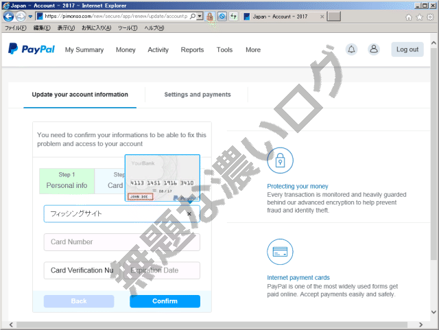 ダマサれて情報を送信してしばうと、海外のサイバー犯罪者が PayPal アカウントに不正アクセスしたり、クレジットカード不正使用の金銭被害が発生して大変なことになるはずです。