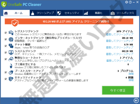 ただ、偽の警告エラーやミスリードさせる表現を OneSafe PC Cleaner は意識的に避けている印象もあります。