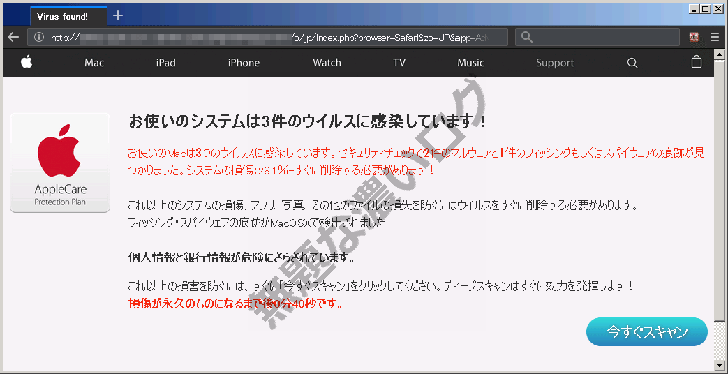 Apple や mac がテーマの 偽警告ページ の実例がコチラ!