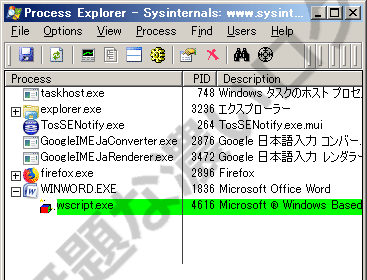 その時の Windows のプロセスの様子がコチラ♪ (使用ソフト Sysinternals Process Explorer)