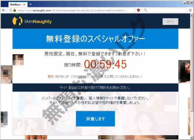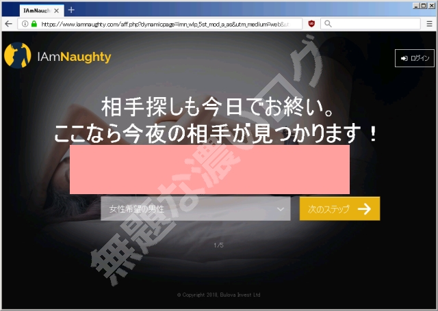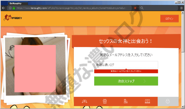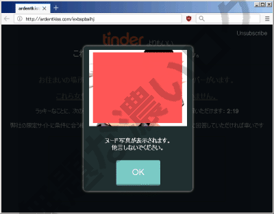 さっそく誘導リンクをポチッとクリックすると、ヌ*ド写真がどうたらこうたらとして卑猥な雰囲気の怪しげな日本語ページが表示されました。