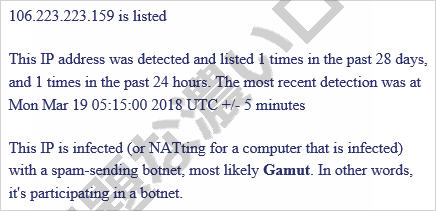 メールを配信するボットネット/スパムボットという判定が返ってきます。