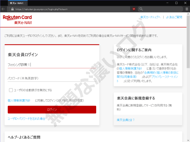 楽天の会員登録やログインページの本物の画像やデザインが流用されていて、見た目の違和感はかなり少ないです。