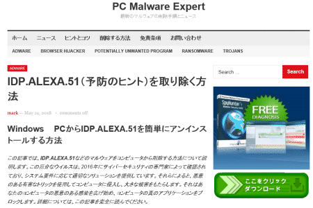 - 「IDP.ALEXA.51」 「IDP.Generic」 の駆除方法を解説するセキュリティサイトっぽく偽装