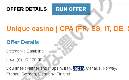 調べてみると、このカジノサイトで Japan(日本人) からの会員登録に付き報酬120ドルという広告案件があり、インチキ詐欺な 「フリースピンを獲得」 ページの正体は、宣伝報酬を得ることのみが目的の広告ページです。
