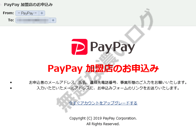 偽メール件名 PayPay 加盟店のお申込み