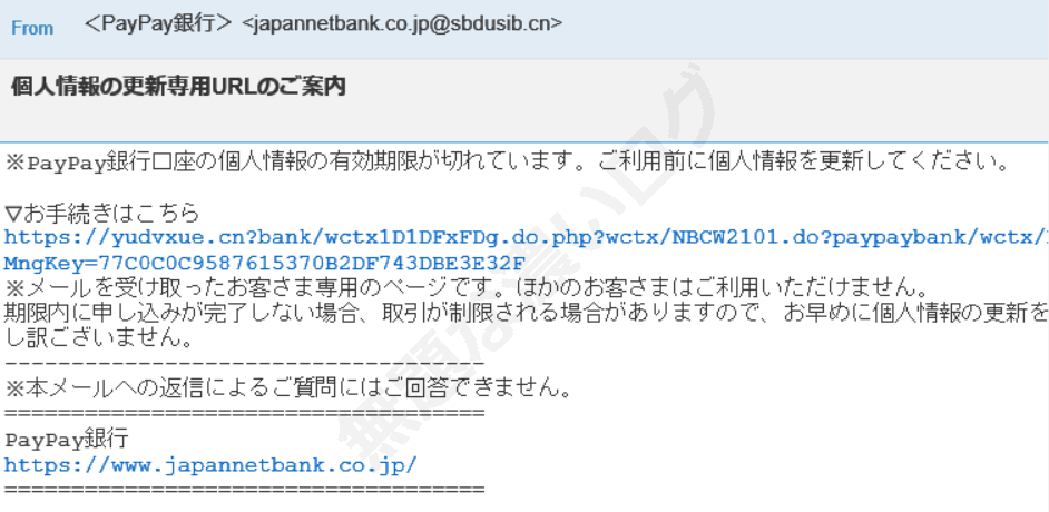 詐欺メール件名 PayPay銀行口座に異常が発生しています 個人情報の更新をご確認ください。 / 「PayPay」異常な活動があります。関連確認を行ってください。自動配信番号