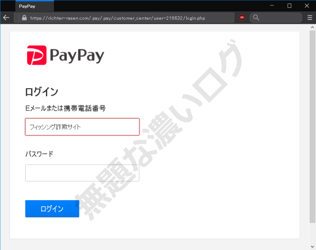 Eメール誘導先は PayPay 偽ログインページ危険