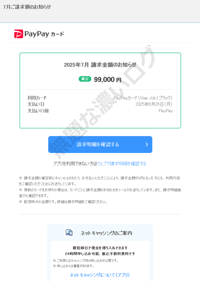 <迷惑メール>PayPayカード銀行を装う詐欺フィッシングでアカウントが危険にさらされます!