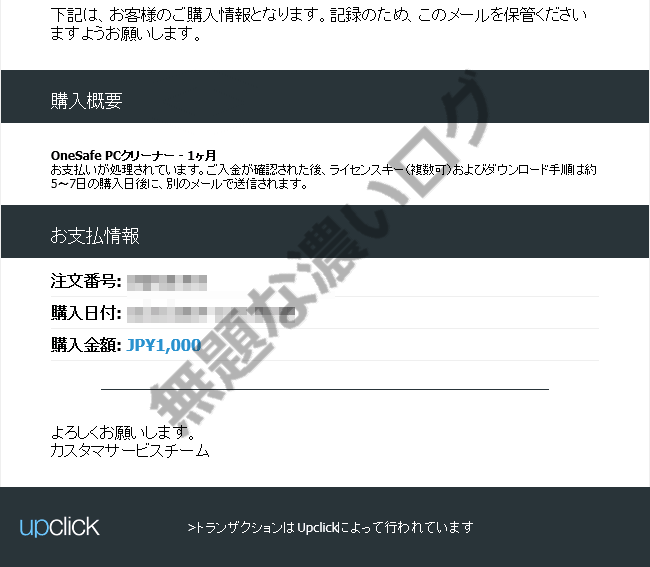 Eメール件名 Upclick 購入確認