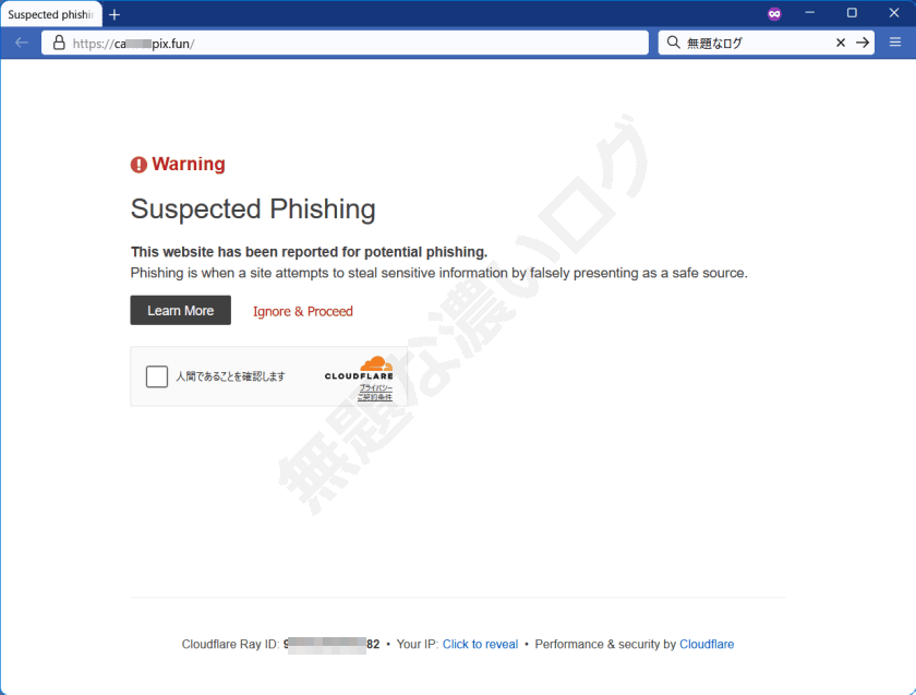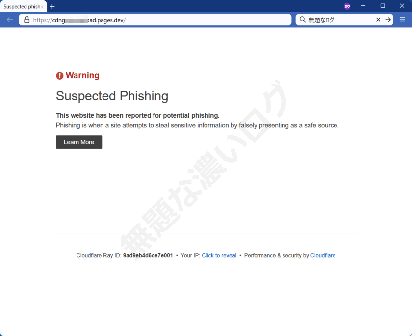 警告: フィッシング サイトの疑いがあります! 無題なログ