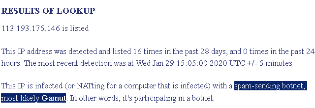 スパムメールのブラックリスト情報を提供する海外のウェブサイト abuseat.org (https://www.abuseat.org/) で、このIPアドレスを引いてみると、衝撃の事実が!