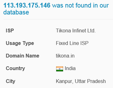 このIPアドレスの地理的位置は、実は インド になります。
