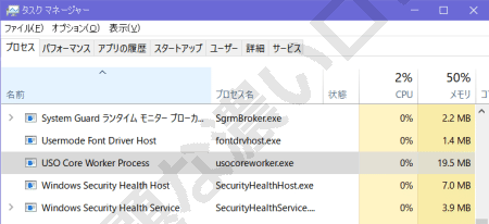 タスクマネージャーにて usocoreworker.exe
