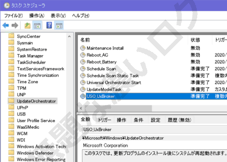 この USO について、Windows 10 のタスクやサービスを調査してみました。