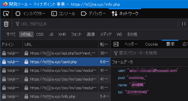 〔Eメールアドレス×パスワード〕 の組み合わせ、氏名と電話番号、その後にクレジットカード情報を入力させるよう流れになっていて、送信された情報を詐欺師が盗む フィッシング詐欺 の脅威です。