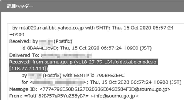 <レンタルサーバーを普通に取得して悪用か二回目特別定額給付金メールのヘッダー情報