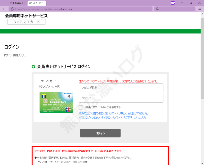 URL : https://wis.pocketcard.co.jp.netservice. ~ .com/login.php
