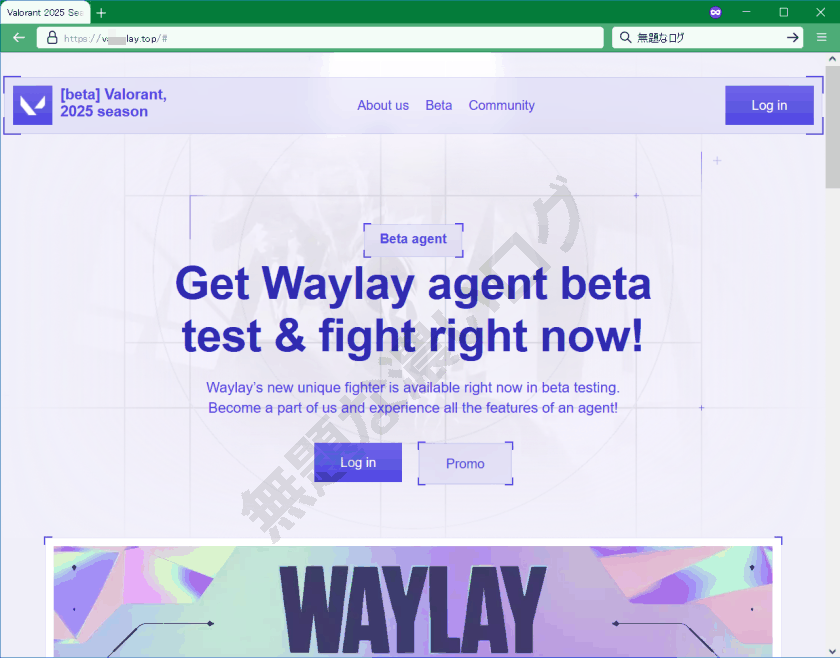 本物のロゴや画像を使い外観デザインを模した VALORANT 偽サイトに誘導