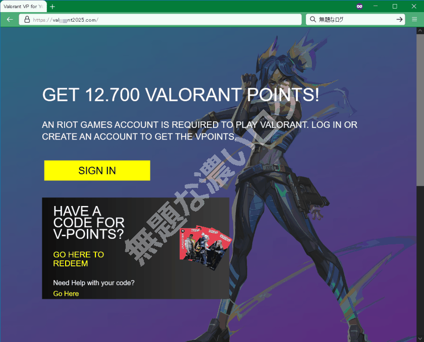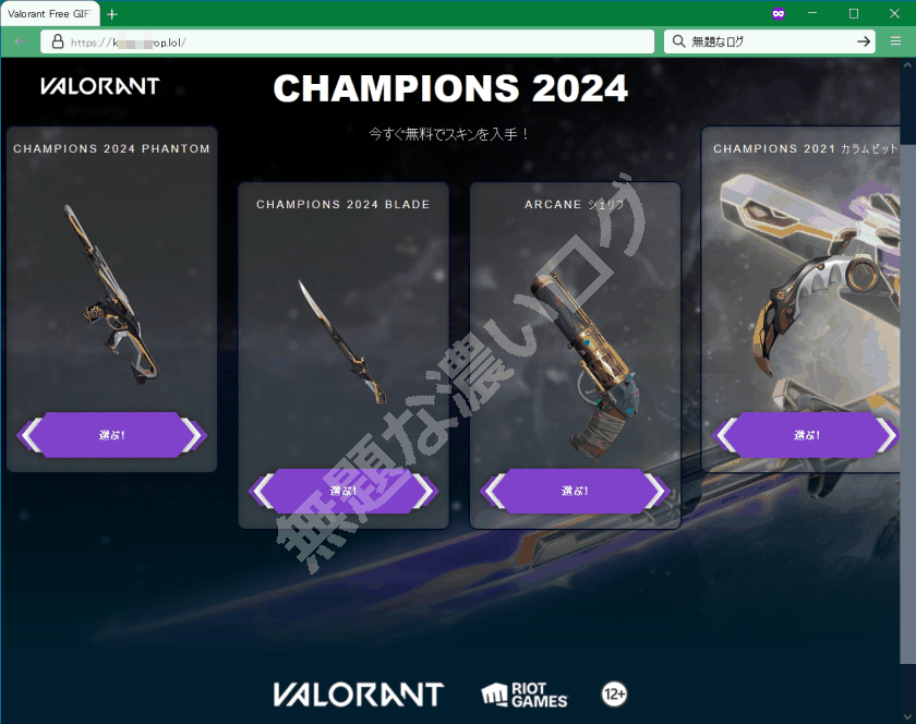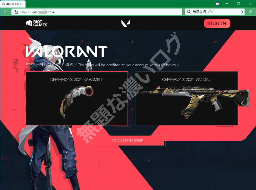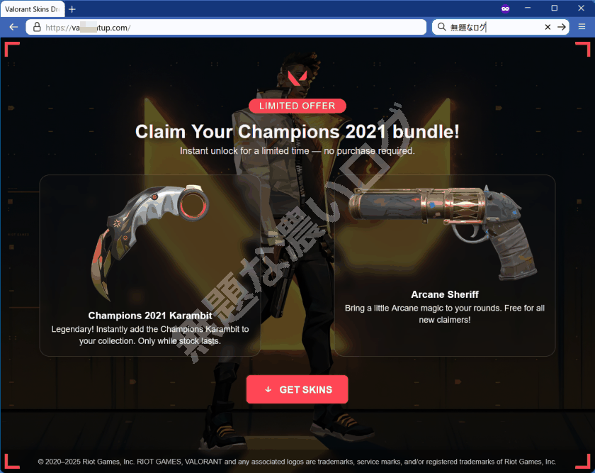 ■ VALORANT スキンが無料? 危険な偽サイト例