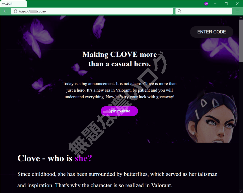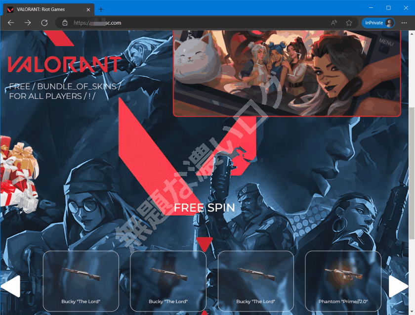 次のような特別な演出感を醸し出す偽サイトで VALORANT スキンを無料で入手できると主張します。
