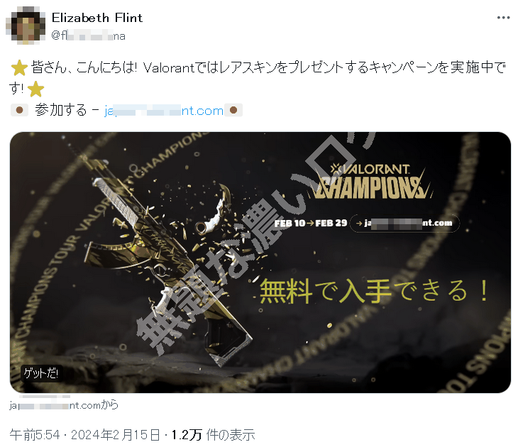 ■ 日本もターゲット! VALORANT スキン配布詐欺の日本語版