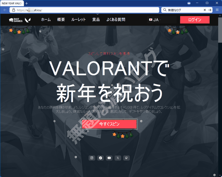 スキン配布詐欺 VALORANT で新年を祝おう