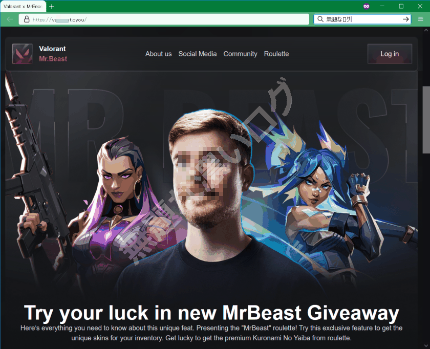 ヴァロラントってMr.beastとコラボしてるんですか?youtubeで流れてきてスキンが無料配布って書いてあるんですけど詐欺サイトですか? Valxway com ってサイトです。