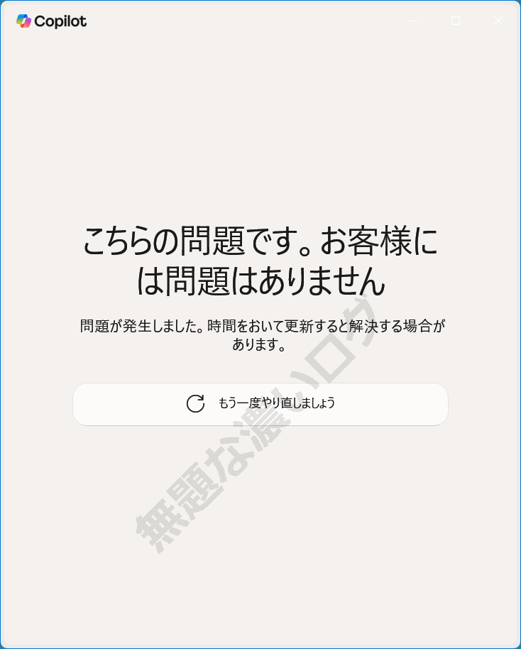 【Copilot アプリのエラーメッセージ】