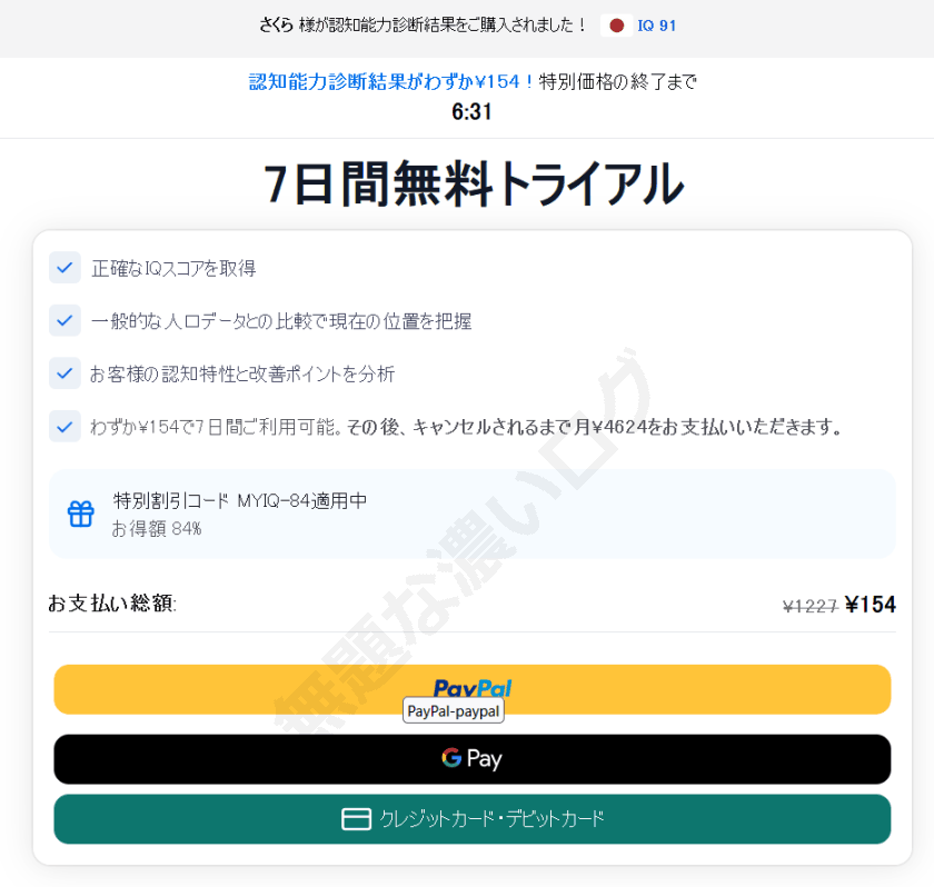 クレジットカード情報を入力して送信していない - 私が行った唯一の作業は 「IQテスト」 を終えた直後に Eメールアドレスを送信したことのみ
