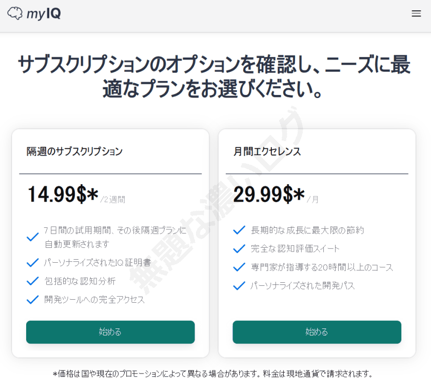 優越感に飢えたユーザーさんが 「脳トレ」 感覚で飛びつくのだろうけど、有料の myIQ が採用する料金体系は サブスクリプション であることに注意すべきです。